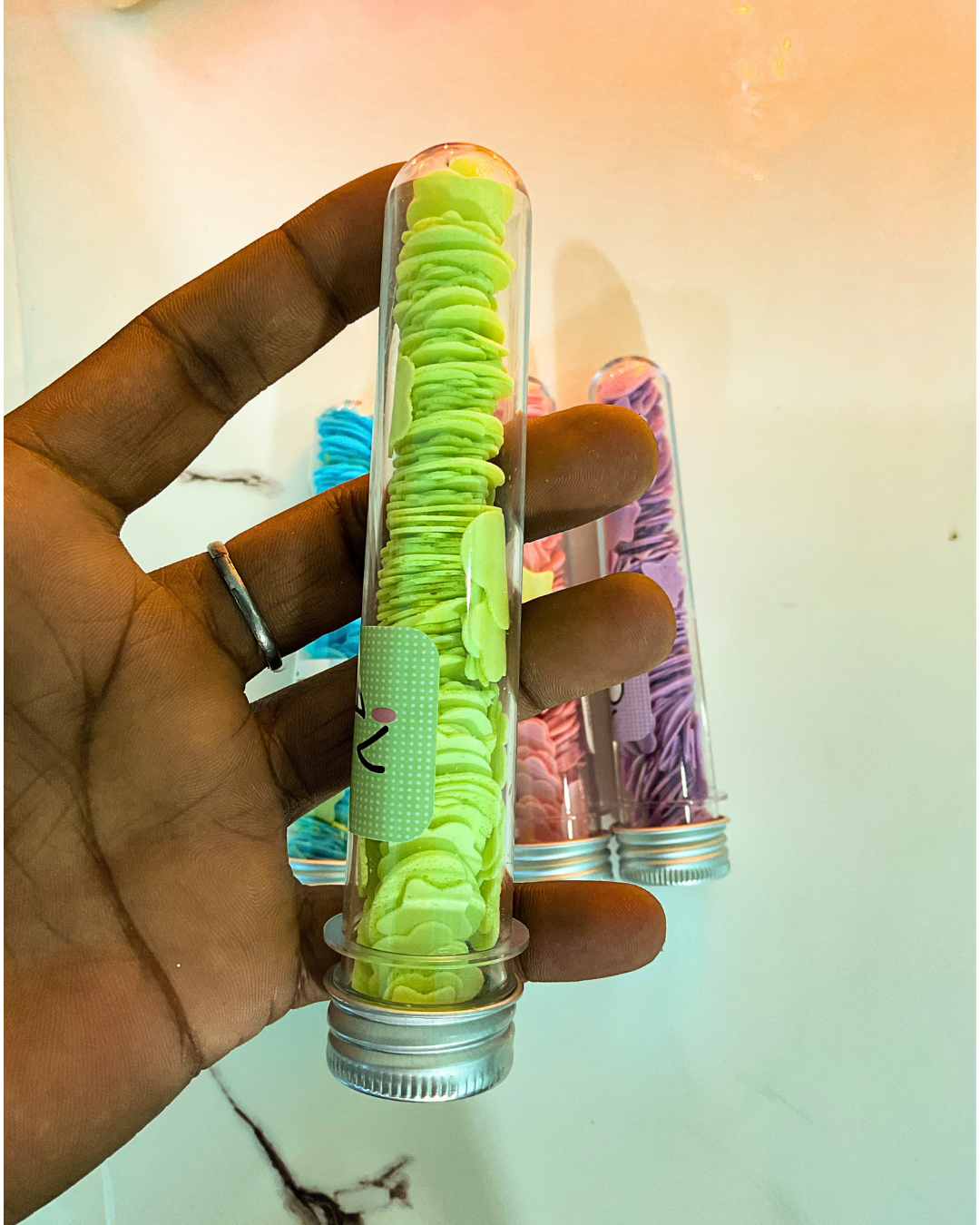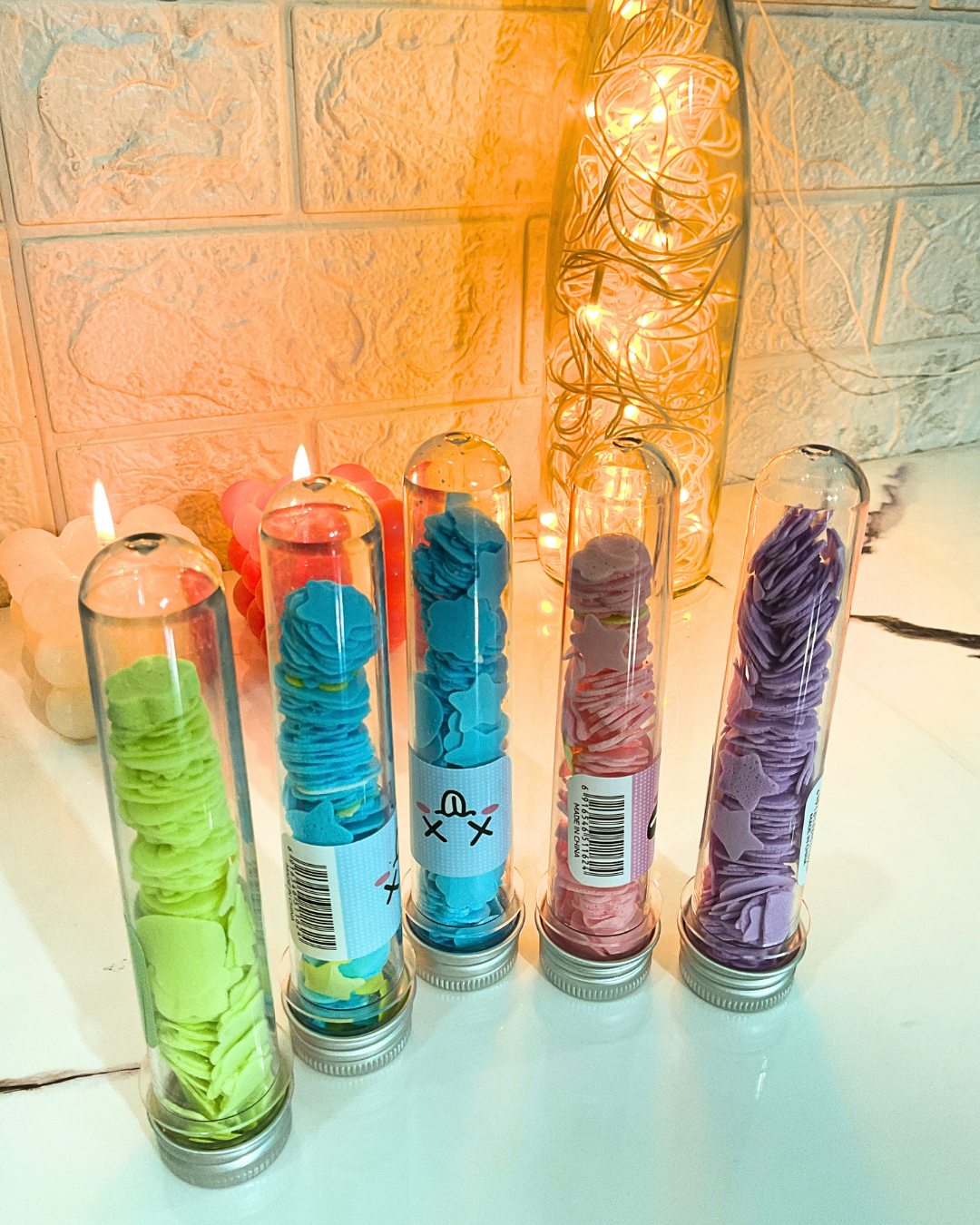 Cute and compact paper soap sheets in a flower tube bottle. Lightly scented, disposable, and easy to carry—perfect for travel, school, office, and outdoor use.