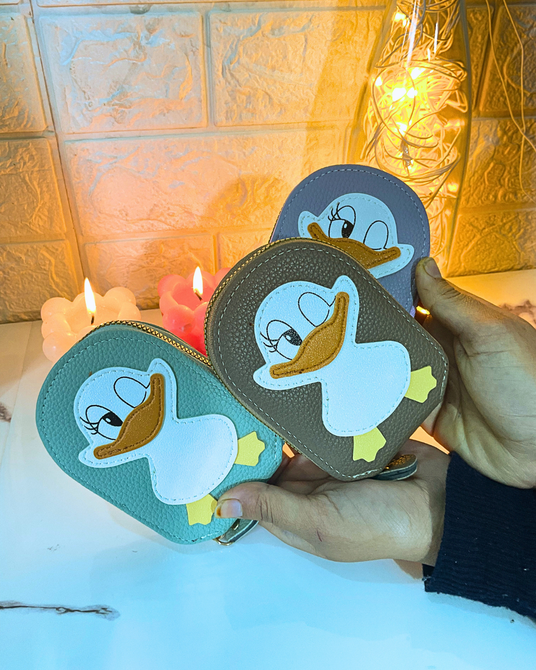 The smooth zipper closure keeps everything safe, while the vibrant penguin print adds a fun and playful touch to your accessories.